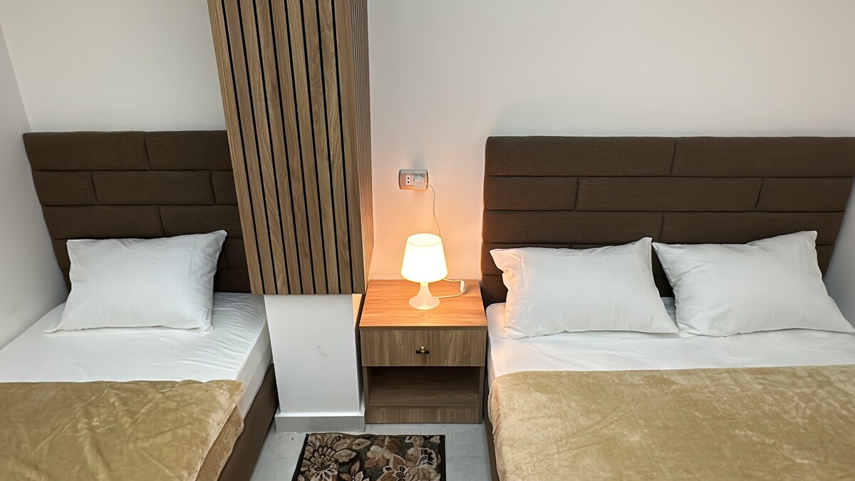 Nuestro apartamento hotelero en Niza ofrece 3 dormitorios, cocina, vestíbulo y 2 baños Estamos muy cerca de los servicios públicos directamente en la carretera, lugar muy agradable y tranquilo y el apartamento es nuevo y todo en el apartamento aún no se ha utilizado, el apartamento está ordenado y limpio y muy agradable para alojarse y relajarse, el aire acondicionado está disponible y también wifi y muy bajo costo en comparación con las habitaciones del hotel.