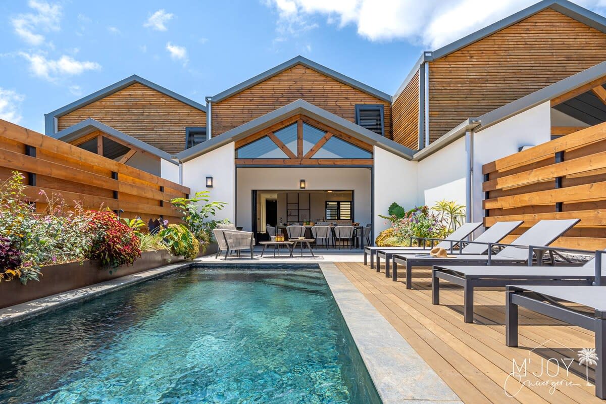 VILLA MAGNOLIA & SPA Après une journée au soleil de La Réunion, retrouvez votre villa d’exception et laissez-vous tenter par un cocktail au pool bar, un moment de détente dans le jacuzzi, ou une soirée sous les étoiles dans le salon extérieur. Conçue pour mêler modernité, élégance et bien-être, cette villa offre un espace spa privé avec sauna et hammam, ainsi que deux suites King Size au confort raffiné. Un cadre unique où luxe rime avec sérénité.