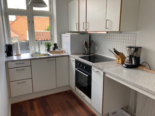 Acogedor apartamento de 50 m² en el corazón de Gråsten con encantadoras vistas al lago del castillo y al castillo de Gråsten. En las inmediaciones hay tiendas, restaurantes, el puerto, la playa de arena y el bosque para pasear. El apartamento ofrece una cocina/comedor abierto para 4 personas, sala de estar con TV, dormitorio con cama doble y sofá cama, baño con banco de ducha, terraza privada, acceso a una terraza común más grande con vistas al lago y al castillo, lavandería (lavadora/secadora por un cargo) y aparcamiento gratuito en el lugar.