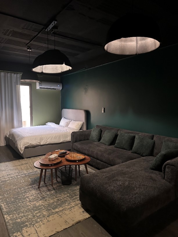 Welcome to our cozy private studio, designed for your comfort. 🚪Enjoy the convenience of Self Check-in with a smart keypad. Enjoy 5G wifi and a 75-inch TV with Netflix, Shahid, and YouTube Premium The bathroom is stocked with essentials like towels, soap, shampoo, and body wash for your convenience. Just a minute away, you'll find everything you need such as a mini-market, laundry service, barber shop, and restaurant