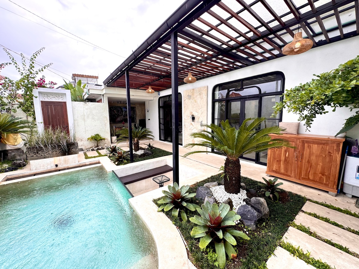 Lujosa villa privada con piscina de 6x3 metros. Segura, privada, protegida. Exuberante jardín y cocina protegida pero al aire libre para comer y relajarse junto a la piscina. Cama tamaño queen, bañera y ducha exteriores, con vistas al estanque de peces, cocina totalmente equipada. Aire acondicionado, televisión, excelente wifi, limpieza diaria y desayuno incluido. Estamos a 8 minutos a pie de la carretera principal o a un corto trayecto en scooter. Esto significa paz y tranquilidad, y sin ruido de coches. Nuestro personal estará encantado de llevarte en scooter si es necesario.