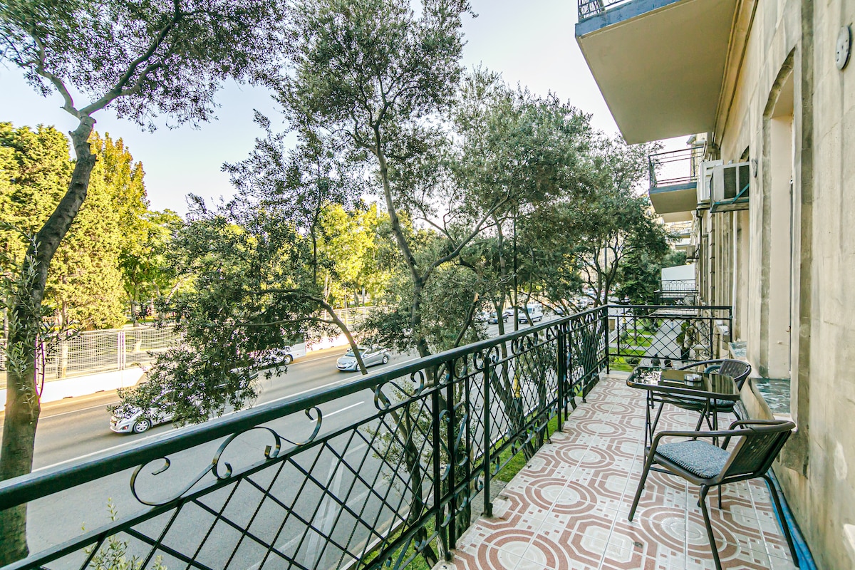¡Queridos huéspedes de nuestra ciudad! Te proporcionamos un departamento con una hermosa vista del parque. Restaurantes con cocina nacional, boutiques y cafeterías a pocos pasos de la casa. La ciudad vieja de Icherisheher y Baku Boulevard están a cinco minutos a pie. La pista de Fórmula 1 está a solo tres minutos a pie de tu alojamiento. Estaremos encantados de ayudarte con los traslados, así como con la resolución de problemas cotidianos. Con nosotros te sentirás tan acogedor y cómodo como en tu propia casa.