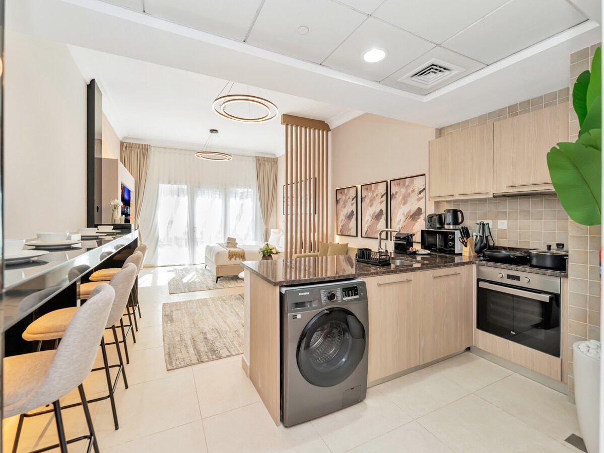 Sumérgete en el lujo en nuestro apartamento estudio de alta gama en Ansam Community, ubicado en el corazón de Yas Island. Disfruta de funciones de última generación como televisores inteligentes y una entrada sin llave para garantizar una estancia sin esfuerzo. Disfruta de comodidades como piscina, gimnasio bien equipado y parque infantil. Tu oasis urbano está a pocos pasos de Ferrari World, SeaWorld, IKEA, Warner's Brothers, Circuito de Fórmula 1. Con asistencia las 24 horas, los 7 días de la semana, Elite Nest se dedica a hacer que tu estadía sea inolvidable.