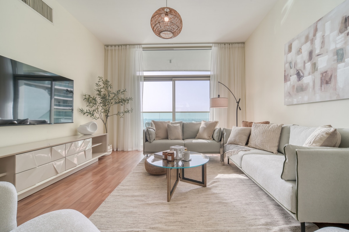 Este moderno refugio ofrece una cama tamaño queen, un acogedor sofá cama (perfecto para hasta 2 personas adicionales), cocina completa, TV inteligente, wifi, lavadora/secadora y balcón privado con vistas al golfo. - Disfruta de acceso privado a la playa, 3 piscinas, 2 gimnasios, un minicampo de fútbol, una zona infantil y aparcamiento gratuito. - A pasos de Carrefour, circuito de Yas Marina. - 5-10 minutos a Ferrari World, Yas Mall y más. - A 7 minutos del aeropuerto, a 25 minutos del centro de la ciudad. - Lujo asequible con seguridad 24/7. ¡Reserva ya una estancia vibrante en la isla de Yas!