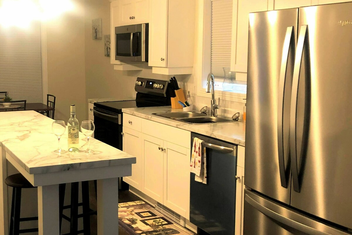 “¡Caminar hasta la panadería a la vuelta de la esquina parecía algo sacado de Gilmore Girls! ” ¿Buscas el alojamiento perfecto cerca del Parque Nacional Acadia sin el caos (y el precio) del centro de Bar Harbor? Lo encontraste. Este apartamento de 2 dormitorios, limpio y recién renovado, en Trenton está a solo 10-20 minutos de todo: las montañas, el mar y tu próximo rollo de langosta. Ya sea que estés aquí para caminar, contemplar las estrellas o simplemente relajarte, este espacio luminoso y cómodo te tiene todo cubierto.