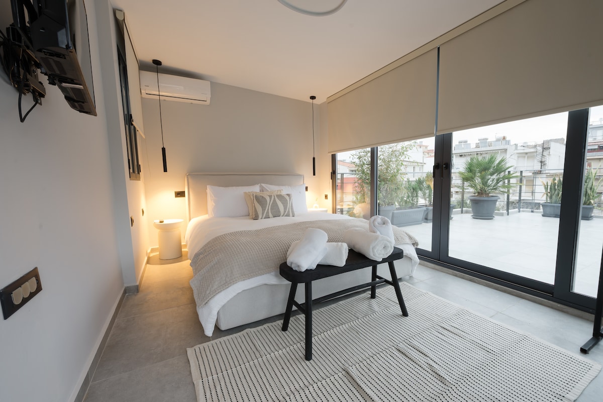 Soy Andriana, mitad suiza, mitad griega y soy tu anfitriona. Situado justo en el corazón de Patras, este hermoso apartamento ático de 2 dormitorios se encuentra dentro de un edificio de preguerra que perteneció a mi abuelo griego. El edificio alberga el ascensor en funcionamiento más antiguo de Patras, aunque un nuevo ascensor te lleva directamente al cuarto piso, donde podrás disfrutar de espectaculares vistas al mar desde el balcón. Aunque está a solo unos pasos de todas las tiendas, restaurantes y bares, el apartamento sigue siendo un espacio tranquilo.