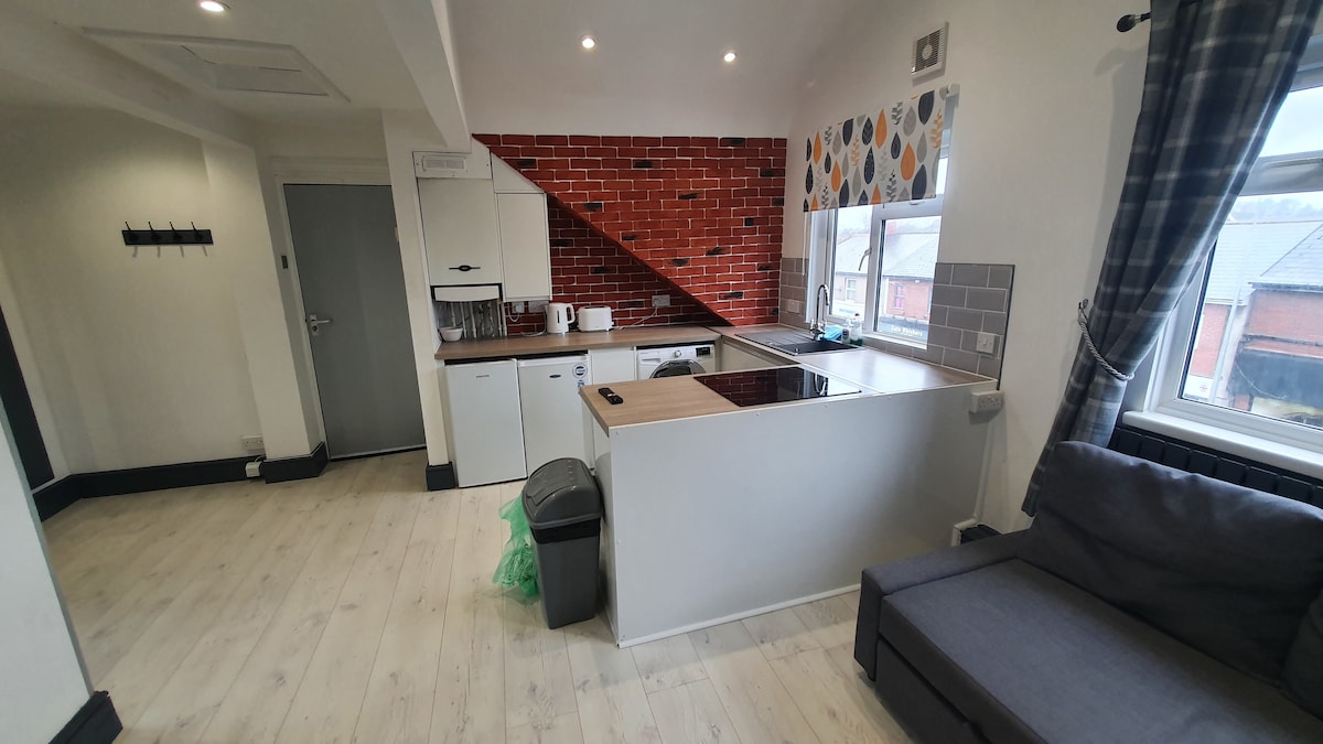 Acogedor departamento de 1 dormitorio, con sofá cama. El corazón de la ciudad, a 15 minutos a pie del estadio, a 5 minutos de la estación de tren. Con base justo fuera de la carretera de la ciudad, donde puedes encontrar restaurantes que sirven comida de todo el mundo, tiendas y comida para llevar toda la noche, esta es realmente una de las mejores ubicaciones de la ciudad para alojarse, porque sin importar la razón de tu visita, encontrarás lo que necesites. El apartamento también tiene estacionamiento todoterreno y un gimnasio al otro lado de la calle, con pases de gimnasio disponibles (£ 5pp/día).
