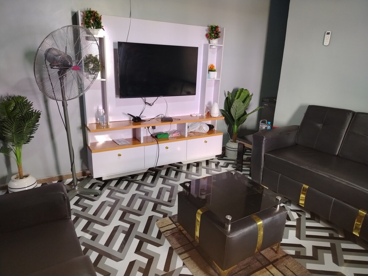 Un nuevo apartamento de 2 habitaciones ubicado en Ijegun, Lagos (Nigeria). Este departamento viene con un televisor de 45 pulgadas, DSTV, aire acondicionado en los dormitorios/sala de estar y ventiladores complementarios. Hay un inversor de 2.5KVA x3 y un generador de respaldo 8KVA (costo cubierto por los huéspedes). El departamento está ubicado en una finca cerrada segura las 24 horas del día, los 7 días de la semana. NO RESERVES PARA 1 HUÉSPED. RESERVA SEGÚN EL NÚMERO DE HUÉSPEDES QUE SE QUEDEN EN EL APARTAMENTO CADA NOCHE. (MÍNIMO 2 HUÉSPEDES). Muchas gracias.