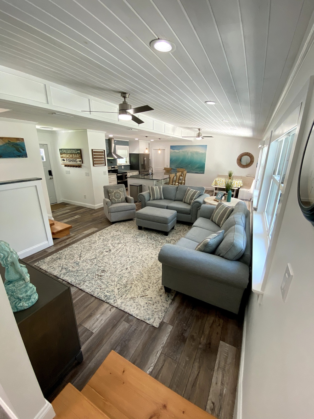 ¡Toma un poco de té dulce en las mecedoras de nuestro porche delantero, donde siempre hay una brisa del océano! Esta casa de campo recién reformada en el centro de Jacksonville Beach está a solo 4 manzanas del mar. Camina o monta en las bicicletas proporcionadas a las muchas tiendas y restaurantes cercanos. En el interior encontrarás pintura fresca, suelos de madera brillante acabados, preciosos techos de madera oscura, hermosos pomos de puerta de cristal originales y muchos detalles vintage cuidadosamente pensados. Para alquilar también la casa de huéspedes, ve a: airbnb.com/h/beachhouseandcottage