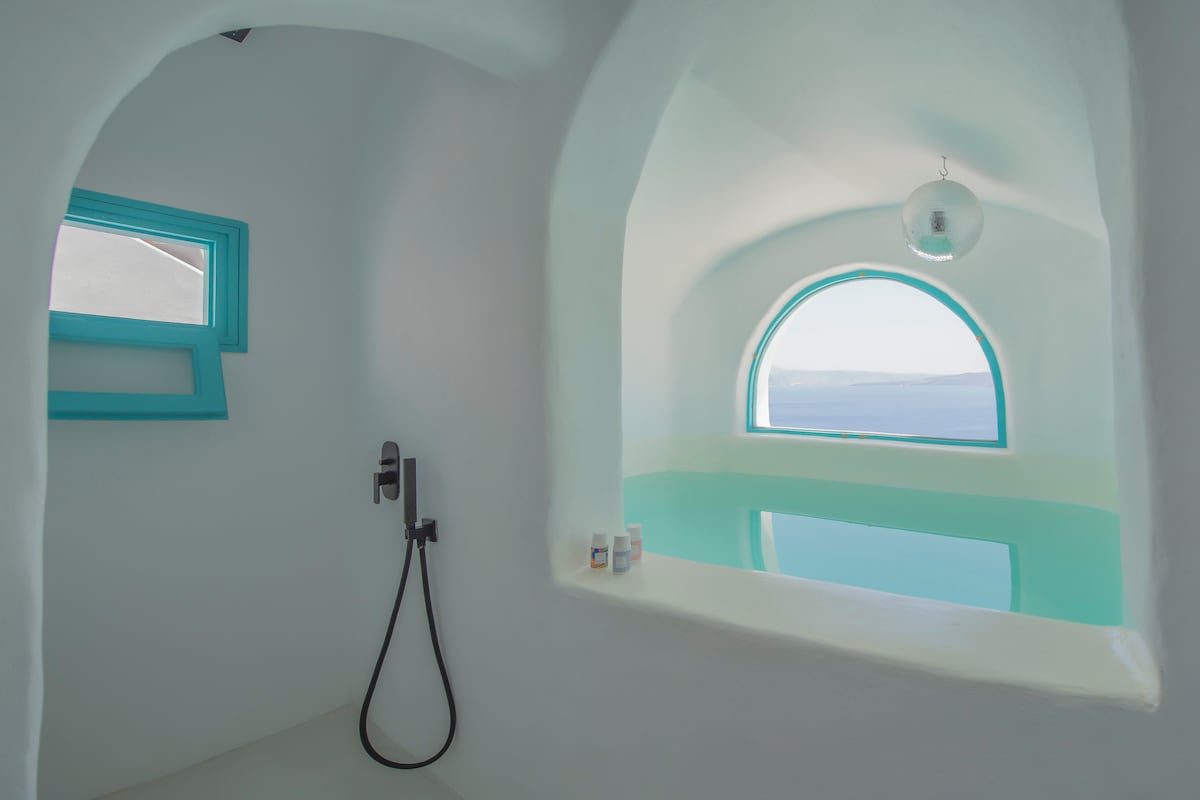 Situado en el corazón de Oia, en una posición aislada en la famosa caldera de Santorini, Oia Spirit es un elegante complejo de 8 casas cueva tradicionales independientes, con acceso a una piscina cueva compartida. Justo al lado de las dos icónicas cúpulas azules de Oia, como si saliera de una postal. Esta suite cuenta con balcón privado con asombrosas vistas panorámicas a la caldera y a las cúpulas azules. El aeropuerto internacional de Santorini se encuentra a unos 17 km de Oia Spirit Boutique Residences y el puerto de transbordadores a unos 23 km.