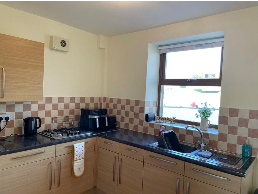 Un espacioso anexo de 1 dormitorio con gran salón comedor, la propiedad está a 5 minutos a pie de la ciudad, castillo, restaurantes, Galeri, etc. y a 2 minutos del carril bici Lon Las. El anexo tiene un dormitorio en la planta superior que tiene una cómoda cama tamaño king y un baño con ducha en suite. La cocina está totalmente equipada con nevera con congelador, horno, vitrocerámica y lavavajillas. El lavadero tiene lavadora y también hay un aseo en la planta baja. Hay mucho aparcamiento disponible en la calle.