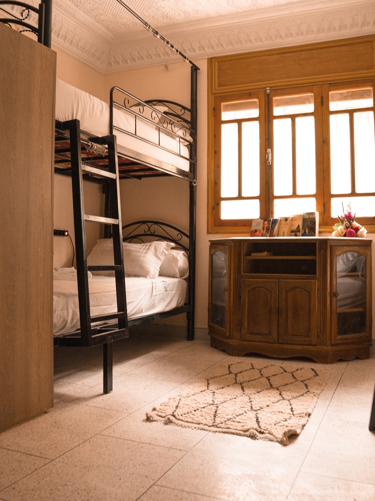 Bienvenido a Inner Wave Morocco, tu refugio de surf y retiro en Tamraght. Esta habitación privada con litera es ideal para viajeros solitarios, amigos cercanos o parejas con presupuesto limitado que buscan descanso, energía oceánica y flujo creativo. Te alojarás en un espacio luminoso, sencillo y acogedor en la planta baja de nuestra casa de huéspedes boutique, con acceso a la azotea, zona de descanso, cocina compartida y comunidad con alma. Somos más que un lugar para dormir: somos un hogar para el surf, el yoga, las ceremonias y la conexión.