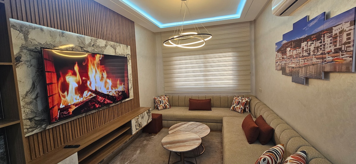 Live the Agadir Luxury Experience. This elegant retreat, just steps from the beach , blends comfort, design, and prestige. Enjoy a fully equipped kitchen, fiber Wi-Fi, workspace, A/C & heating, pool, two private terraces, parking & security. Steps from top restaurants (McDonalds , pizza Hut, El Bahja Sushi, Bayt Al Mandi, Vitamix open till 4 AM) and lounges. On request: driver-guide, private chef, maid, airport transfer, and any other service in Agadir.