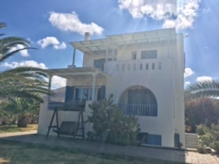 Bonita casa de verano luminosa y cicládica con todos los servicios proporcionados con hermosas vistas al mar Egeo. La casa combina muebles modernos y tradicionales. Tiene cuatro dormitorios, dos salas de estar, dos baños completos , tres balcones y terrazas, jardín con palmeras, mucho área de estacionamiento. Wifi de alta velocidad.