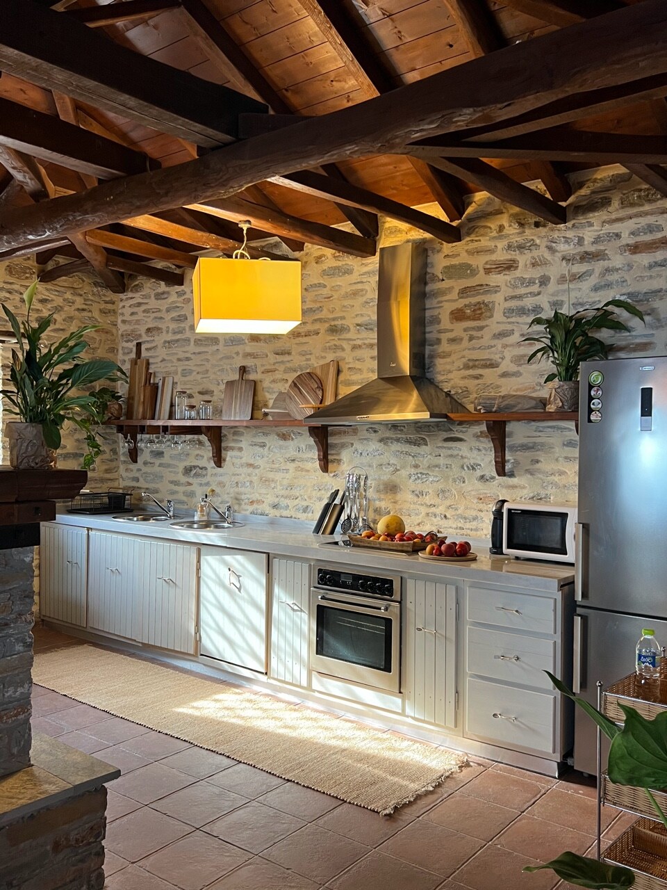 En el pueblo tradicional de Makrinitsa, subiendo y caminando 200 m por un camino pavimentado, llegarás a la fuente de Tsoni. Al lado se encuentra la casa de piedra completamente renovada, ideal para pasar momentos de tranquilidad y relajación mientras contempla la vista panorámica que se le ofrece generosamente. Un espacio sencillo y austero, como corresponde a un pueblo de Pelión.