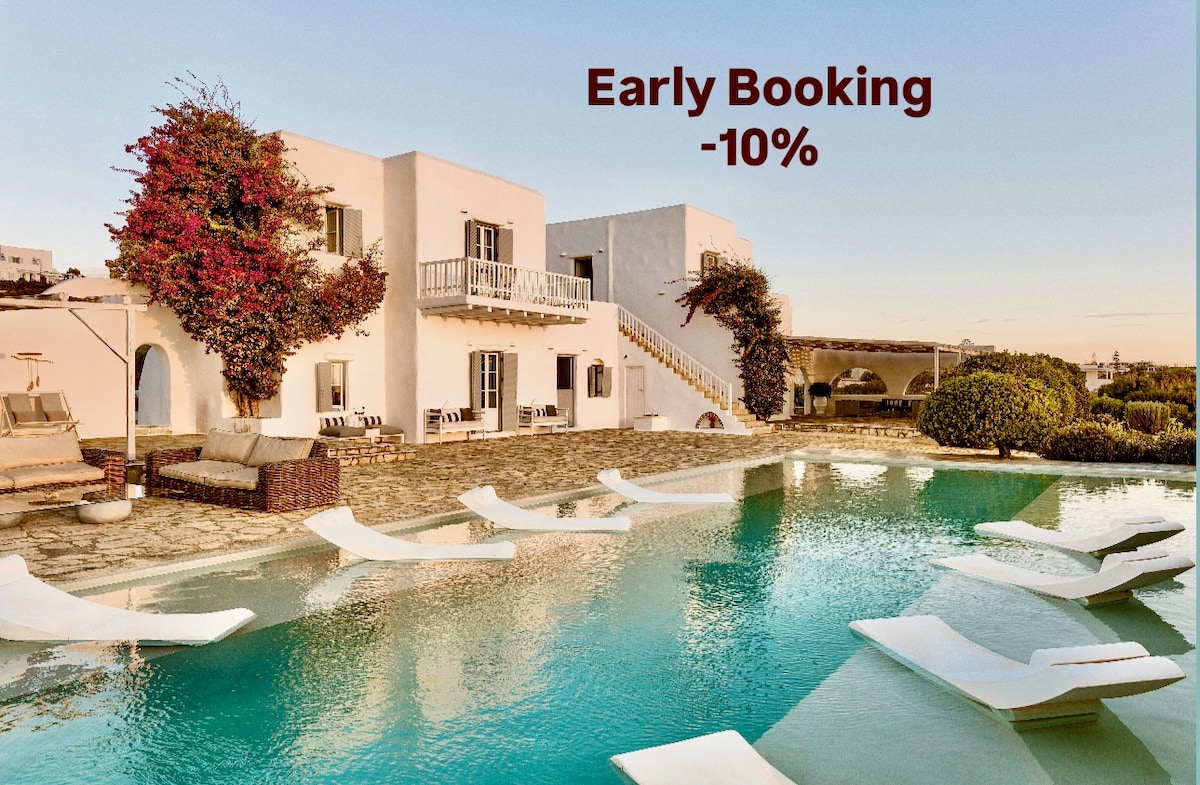 ¡Acompáñenos en Villa Maria para disfrutar de las vacaciones de verano en la isla griega con las que ha soñado! Vistas ininterrumpidas de las hermosas aguas azules del Egeo, atardeceres inolvidables desde nuestra terraza privada, delicias tradicionales locales como mermeladas caseras y miel griega, paz y serenidad a través del sonido ininterrumpido de las olas bajo las luces de las estrellas por la noche. Por favor, póngase en contacto con nosotros para obtener más información sobre Villa María y lo que podemos ofrecerle.