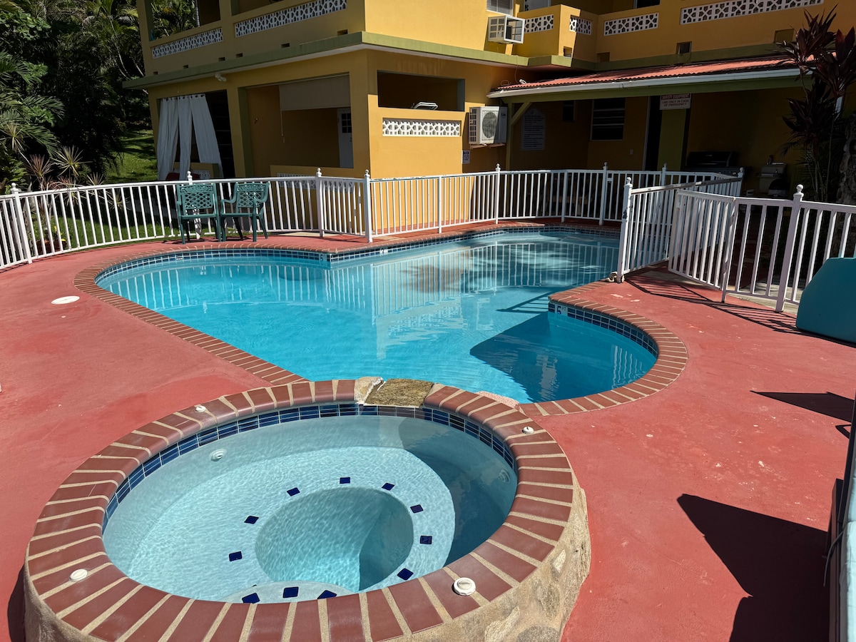 Hermoso apartamento de 1 dormitorio y 1 baño recién amueblado con piscina privada en el segundo piso. Villa Carmin se encuentra en el callejón ciego interior de la autopista n.º 2 en la ciudad de Aguadilla. Este lugar íntimo y acogedor te dará la oportunidad de crear recuerdos preciosos y experiencias inolvidables. Villa Carmin está estratégicamente ubicada para que disfrutes de una exquisita variedad culinaria, entretenimiento, deportes y sus hermosas playas.