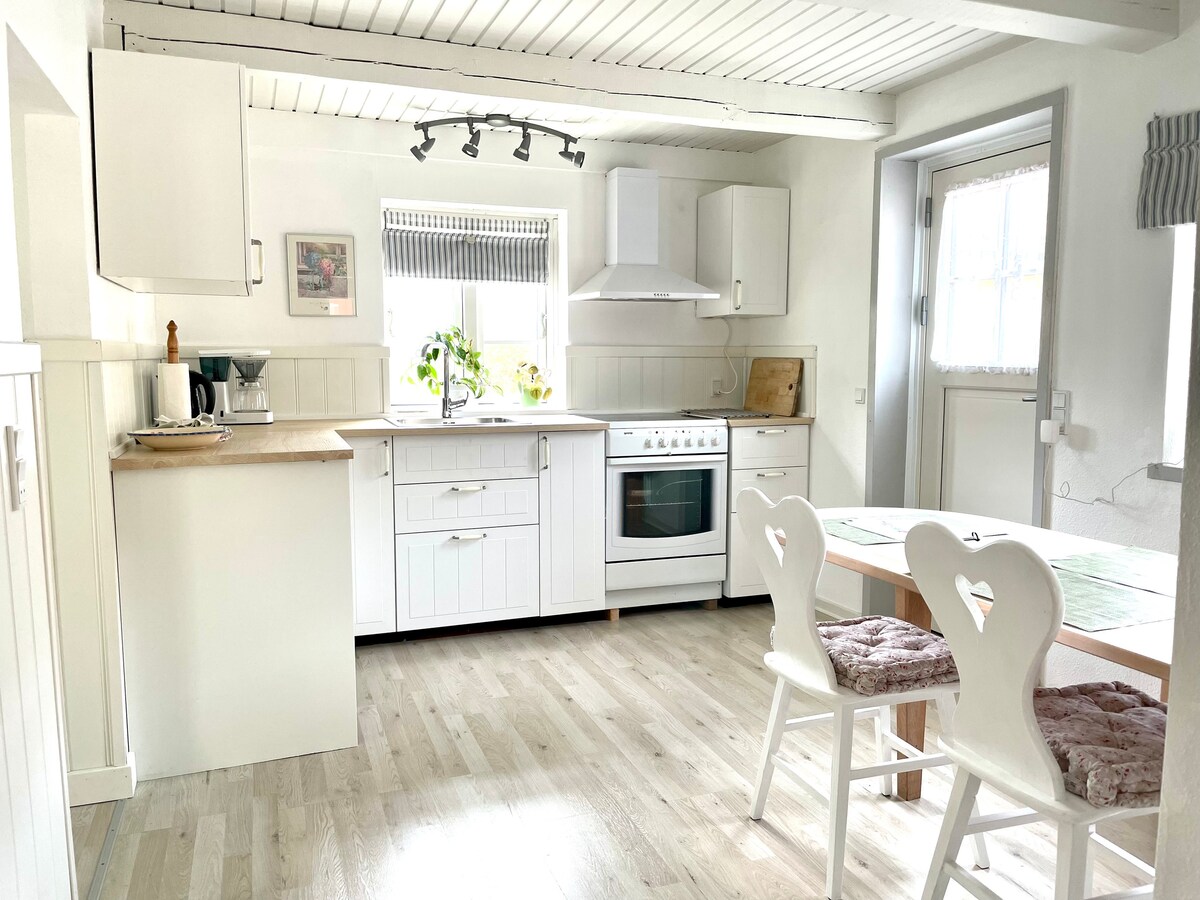 Casa pequeña de 50 m2. Es parte de la antigua granja donde vivimos. Los fines de semana y festivos a veces organizamos un mercadillo en otra parte de la granja. Es el lugar más meridional que se puede alquilar en Dinamarca. Sin tráfico, tranquilo y relajante.