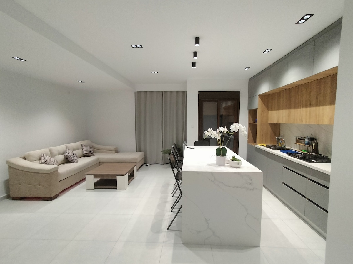 Bright two-bedroom apartment in Akid Lotfi with a balcony and sea view, ideal for couples, families, and business travelers. The apartment features two comfortable bedrooms, a modern living room, fast Wi-Fi, air conditioning, a fully equipped kitchen, and self check-in. Located in a quiet residence with free parking. Close to cafes, restaurants, beaches, and shops. Perfect for a comfortable stay in Oran.