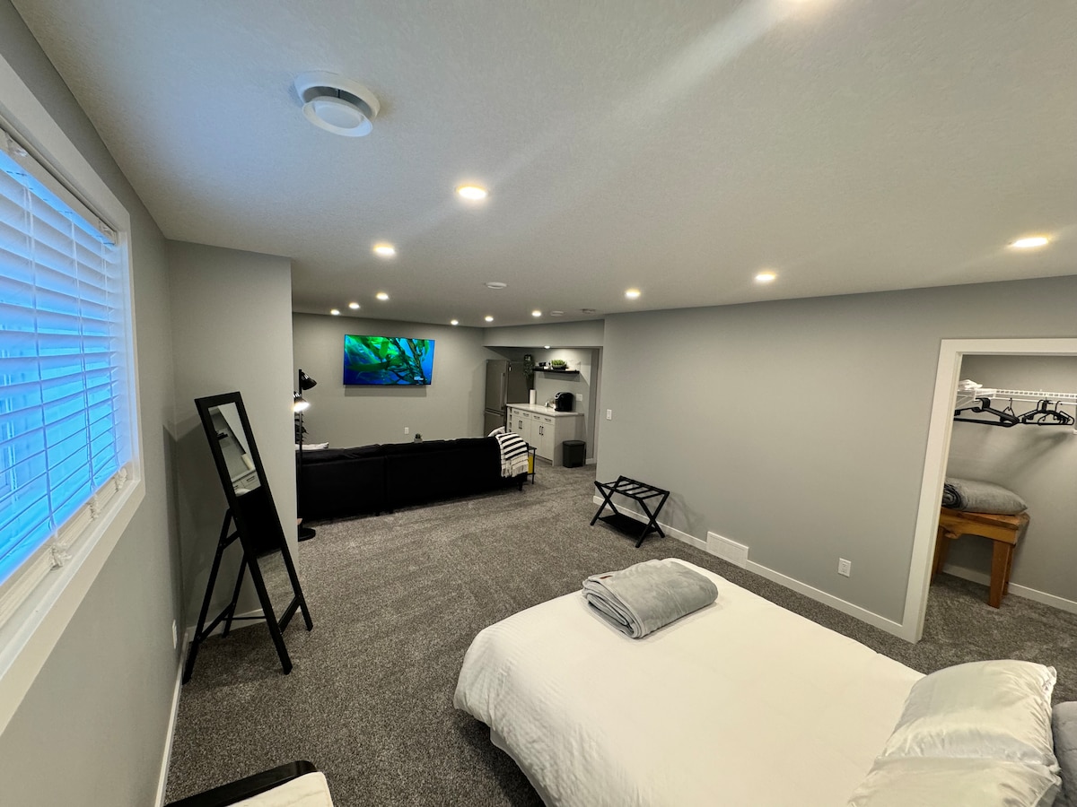 Cálida suite de 1 dormitorio en el norte de Calgary, a 15 minutos de YYC