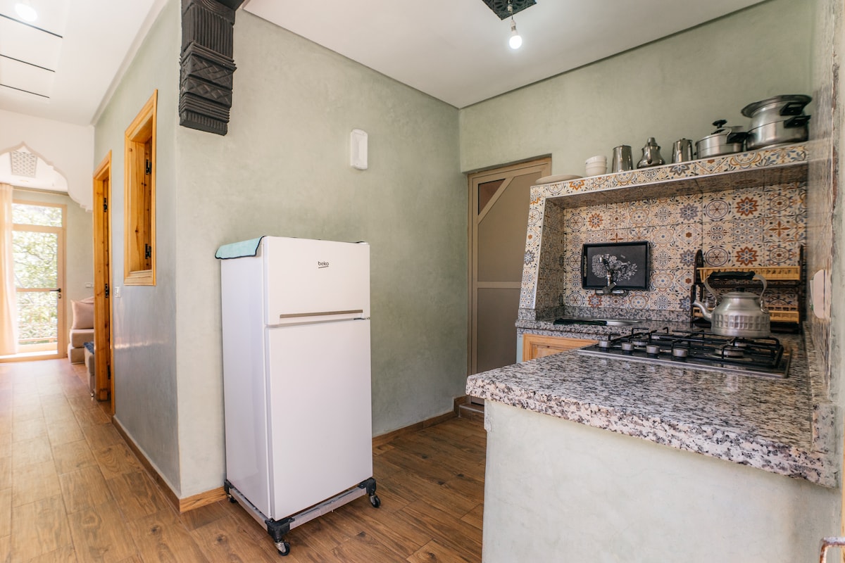Bienvenue à Dar Ourika 🏡, votre refuge au pied de l'Atlas à Agbalou (1h de Marrakech) 🏔️. Que vous soyez en couple, en famille ou entre amis, profitez d'une luminosité exceptionnelle et d'un calme absolu ✨. Les plus : ✅ Salon spacieux avec vue. Panoramique époustouflante ✅ À 5 min du bord de l'eau : murmure et sérénité 🌊 ✅ Idéal pour le télétravail (Wi-Fi stable) 💻 Un véritable retour à la nature dans un cadre authentique, chaleureux et calme 🌿. Réservez vite votre séjour! 🔑
