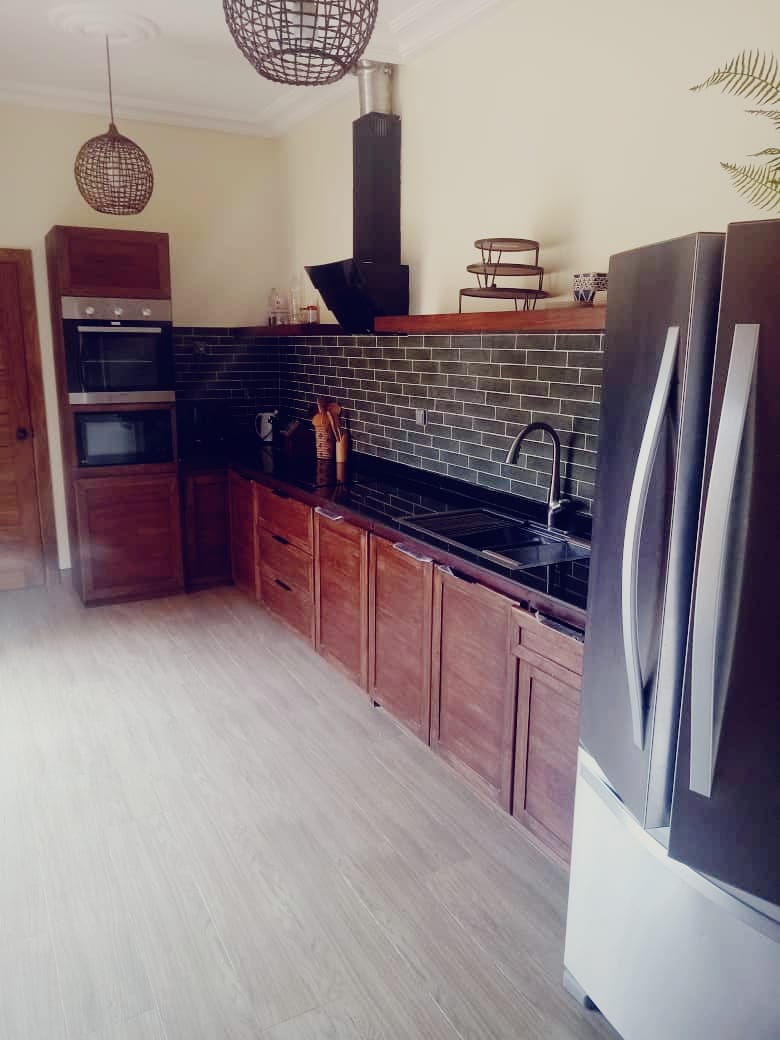 Ofrecemos este hermoso apartamento en la ciudad de Abomey-Calavi, no muy lejos de la capital económica Cotonú. Está cerca del mayor centro comercial Super U. y a pocos minutos de la Venecia de África (Ganvié). Es un apartamento moderno con aire acondicionado (amplio salón y 2 dormitorios independientes) funcional con una cocina totalmente equipada (cocina – horno de gas, etc.). La piscina completamente privada en la azotea es perfecta para su relajación y será exclusiva para usted.