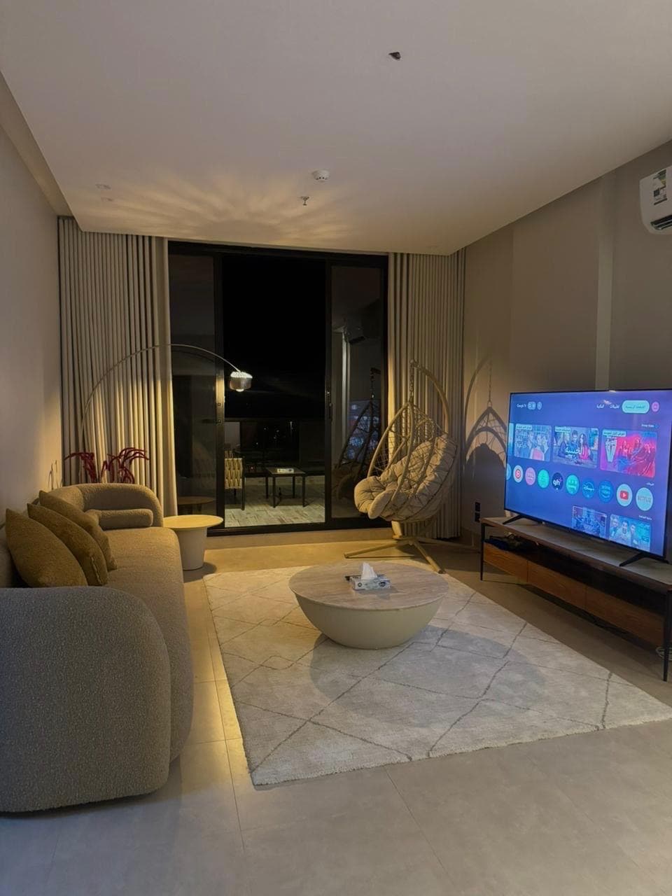 Descubre una estancia distintiva en un cómodo apartamento en la ciudad de Al Khobar. El apartamento cuenta con varias características: 1. Entrada inteligente y segura a través de una cerradura de puerta inteligente. 2. Un hermoso balcón con vistas. 3. Un rincón de café equipado con cafetera, microondas y nevera pequeña. 4. Una pantalla inteligente 4K. 5. Conexión rápida a internet 5G. 1. Puente de Baréin: a 5 minutos. 2. Centro comercial Rashid: 10 minutos. 3. El paseo marítimo a 5 minutos.
