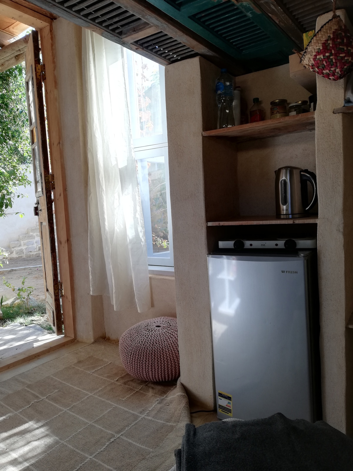 Alojarse en El-Sheesh es como alojarse en una pequeña casa del árbol... «El-Sheesh» (obturador en árabe), con sus 16,5 metros cuadrados, es la segunda más grande de nuestras 3 casas pequeñas en Barefoot en Túnez. Tiene capacidad para un máximo de 4 personas, cuenta con una cocina totalmente equipada y un baño, un hermoso nicho de estar, un comedor y una encantadora terraza al aire libre para relajarse al atardecer...