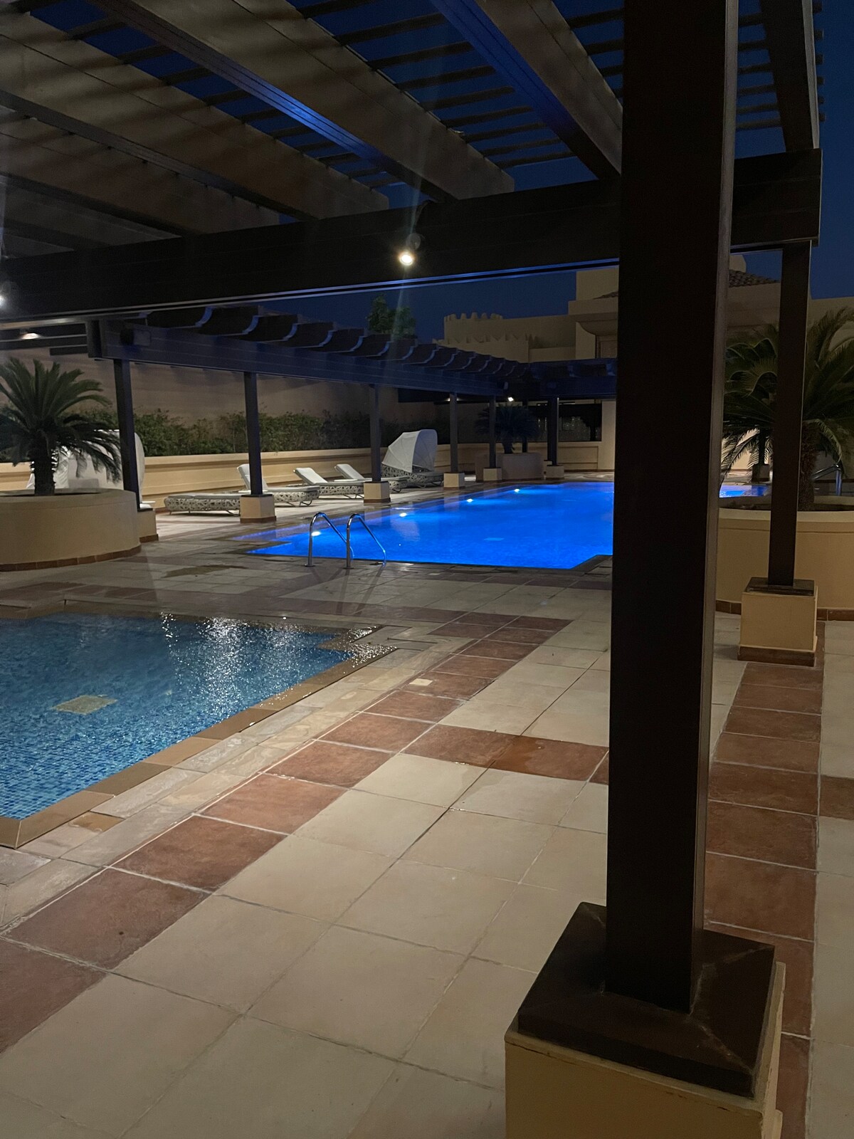 Welcome to your stylish home away from home in the vibrant Lusail! This modern 2-bedroom apartment offers the perfect blend of comfort and convenience. Ideal for families, business travelers or friends exploring Doha. Located 50m from the waterfront, facing the beautiful marina promenade. The apartment offers an outdoor pool, gym, sauna, 24/7 security, WIFI and kids playing area. In walking distance of Place Vandome Mall, Lusail Yacht Club, Beef Bar, Al Maha Island and Doha metro station.