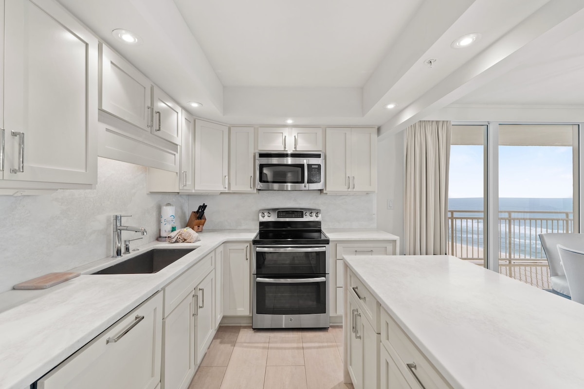 Despiértese con vistas panorámicas del golfo, desde el suelo hasta el techo, desde su dormitorio principal, la sala de estar y la cocina. ¡Disfrute de una estadía frente a la playa con decoración costera en uno de los complejos turísticos más lujosos de la zona! ¡Con una amplia playa, 4 piscinas, 3 restaurantes en las instalaciones más food trucks, un bar Tiki, parrillas, cancha de baloncesto, cancha de voleibol, cancha de tenis, cancha de pickleball, área de juegos para niños, spa y cafetería! ¡Nunca tendrá que salir del complejo turístico! Ubicado en la prístina y tranquila zona de Fort Morgan, está a solo 15 minutos de las zonas turísticas más concurridas.