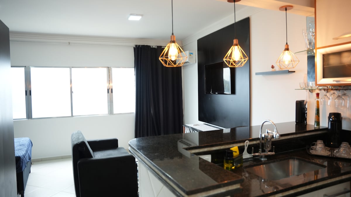 Ubicado en lo alto de la deslumbrante Isla Porchat, en el exclusivo Condominio Blue Moon y Blue Sky, este estudio fue especialmente diseñado para aquellos que no renuncian a la comodidad durante su estadía. Relájese escuchando el suave sonido de las olas mientras disfruta de un paisaje impresionante. ✨ Perfecto para descansar, el estudio ofrece una vista espectacular, donde se pueden observar lanchas y motos acuáticas cruzando el mar o incluso dar un paseo por la isla. 🚤 ¡Será un placer tenerte aquí! 🌞🏖️