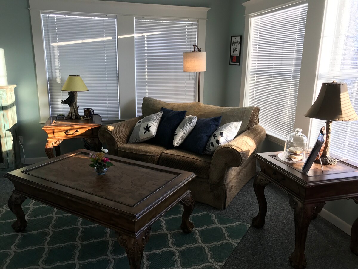 Entrada privada con una gran entrada con espacio para equipaje, abrigos, zapatos, etc. El dormitorio grande tiene una cómoda zona de descanso con un futón. El baño y la sala común son para tu uso privado y no se comparten. La lavandería se encuentra en el sótano. ¡Cubierta con vistas al canal! Nuestro alojamiento se encuentra en el centro de Juneau, justo detrás de la mansión del gobernador. ¡Está a solo 5 minutos a pie del edificio de la capital y de las tiendas y restaurantes del centro!