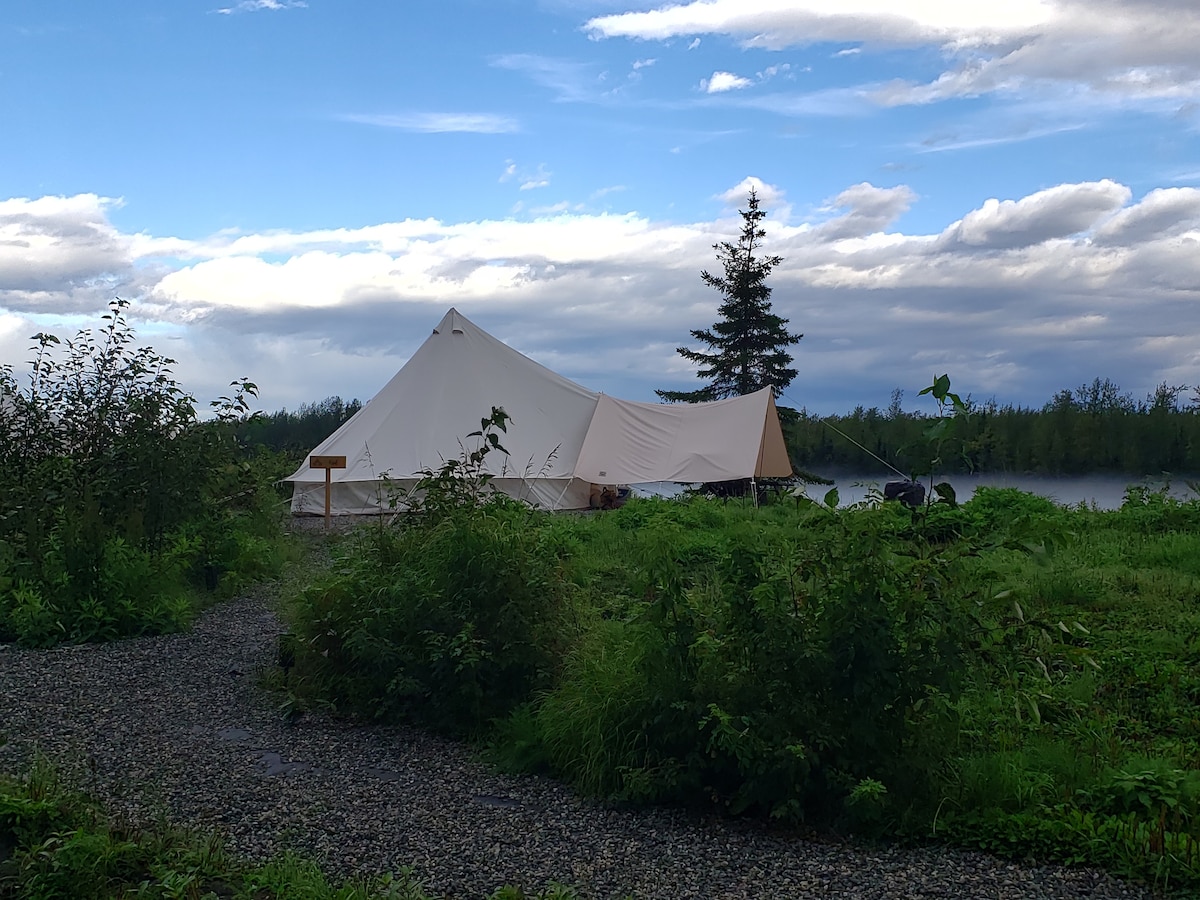 Vuelve a conectar con la naturaleza con esta escapada inolvidable. Ubicadas a orillas del río Knik en Palmer, Alaska, nuestras tiendas glamping ofrecen una experiencia única. Desconecta, relájate y descansa en nuestras tiendas de campaña de lona. Cada tienda está elegantemente equipada con una cama tamaño queen, sábanas, alfombras, decoración elegante y otros servicios. A solo 45 minutos al norte de Anchorage, nuestra ubicación cuenta con vistas increíbles y acceso a todo tipo de actividades al aire libre. ¡También es perfecta para microbodas, retiros y pequeñas reuniones!