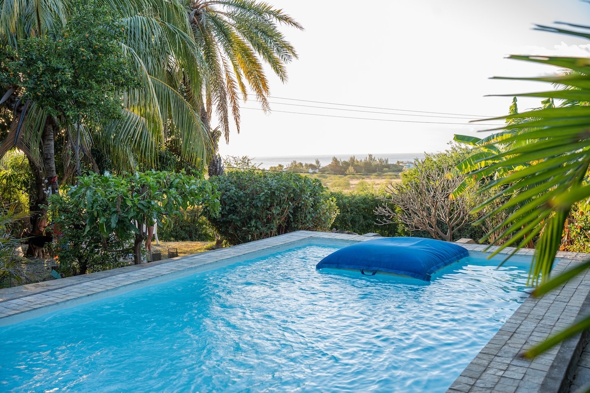 The Superior Pool Villa 1 bedroom 210m² consists of a large living area – living room, dining room and kitchen. The exterior comprises an exotic garden enclosed and secured with a gazebo (typical Mauritian covered terrace) as well as a private swimming pool of 18 m² . As an extension to the villa, a beautiful terrace ideal space to enjoy your meals. To maximise your comfort, we offer daily housekeeping and bed-making services and provide household and beach linen.