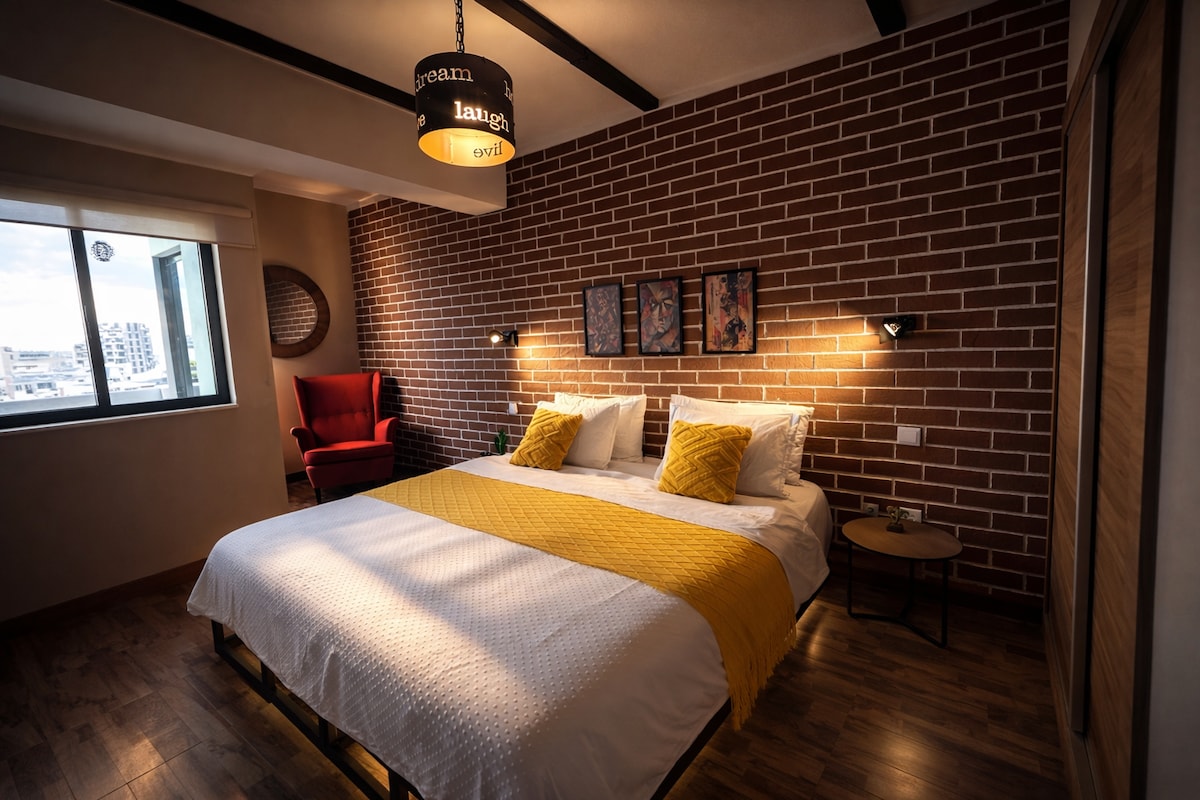 Beautiful, top floor, Lagos apartment with easy access to a shared rooftop terrace with stunning sea views and private balcony overlooking the historical centre and Monchique mountain. Central, yet peaceful, 15 min walk to beaches. Relax in modern, elegant interiors with an eco-conscious luxury touch—your ultimate Algarve retreat. Rated 5 stars by 600+ guests, ideal for solo travellers or couples seeking a luxury retreat in central Lagos.