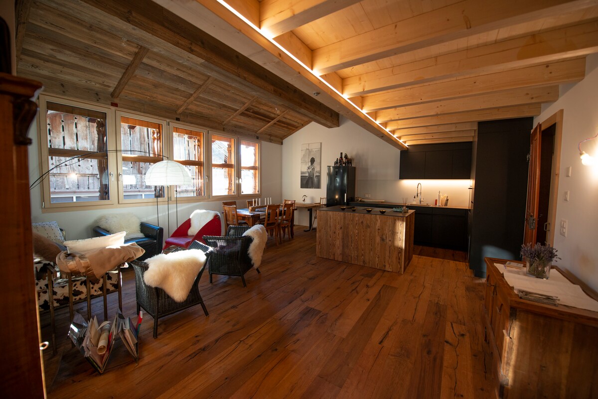 Acogedor, luminoso y lleno de amor. En este ático de casi 50 m² te sentirás como en casa. Las hermosas vistas de las montañas y los maravillosos ambientes de la naturaleza te permiten llegar rápidamente a tu tiempo de descanso. La madera cálida, los materiales naturales y el dormir en el nido Hüsler son especialmente acogedores. La variada oferta de la región también atrae al aire libre y no deja nada que desear. El apartamento es adecuado para un máximo de 2 adultos y 2 niños pequeños en edad escolar.