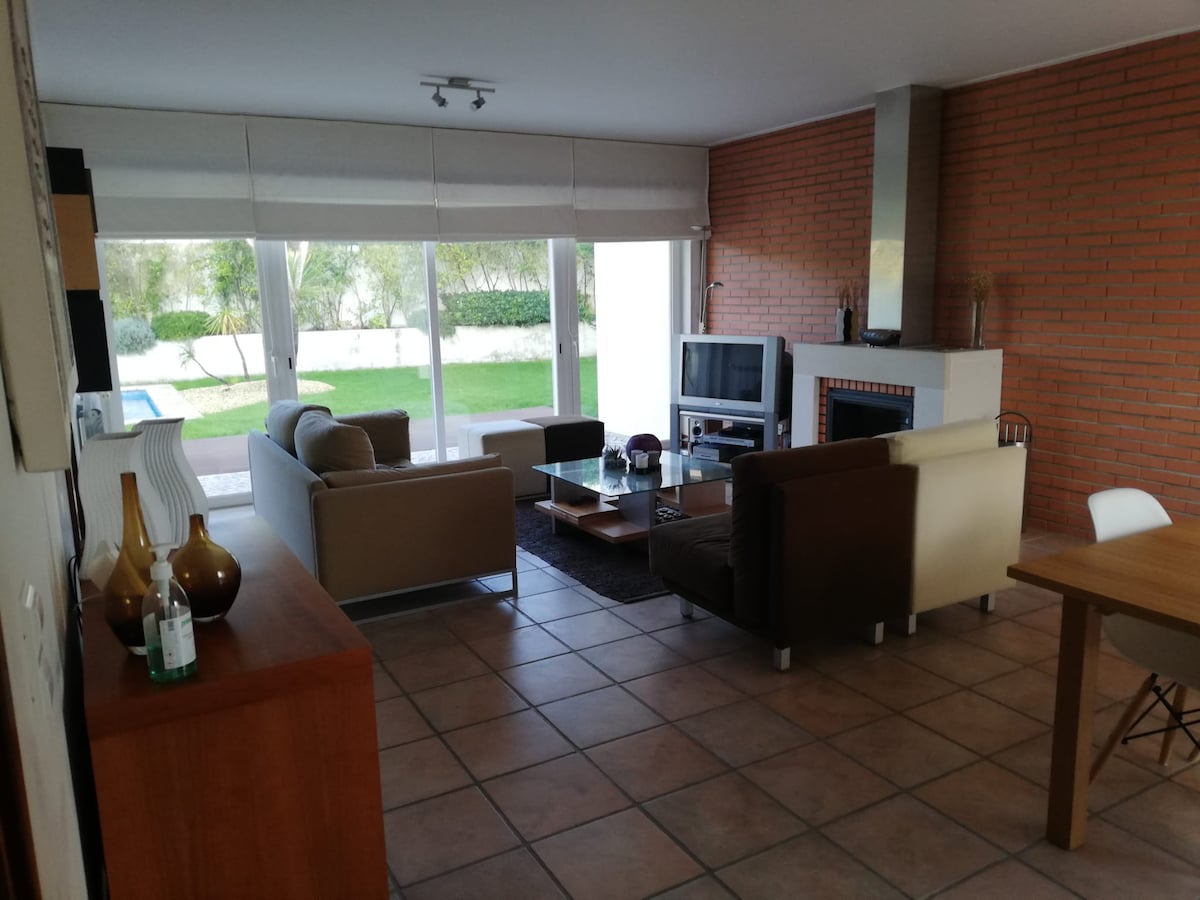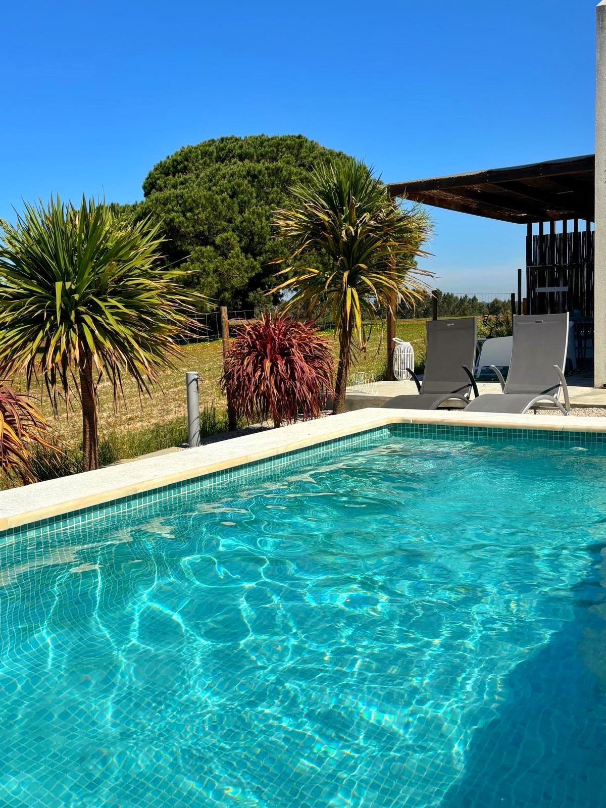This is a beautiful villa with many amenities and sleeps up to 6 guests. The property has lovely views, in a 3.5-hectares nature reserve of pine trees, orchards and gardens. The space is very romantic, quiet and gated. Have access to a large swimming pool that is well-maintained and heated (maximum 29º) with a removable roof. Playground for kids with swings, basketball, ping pong and football table areas. 7-min near Aldeia do Meco beaches and Cabo Espichel.