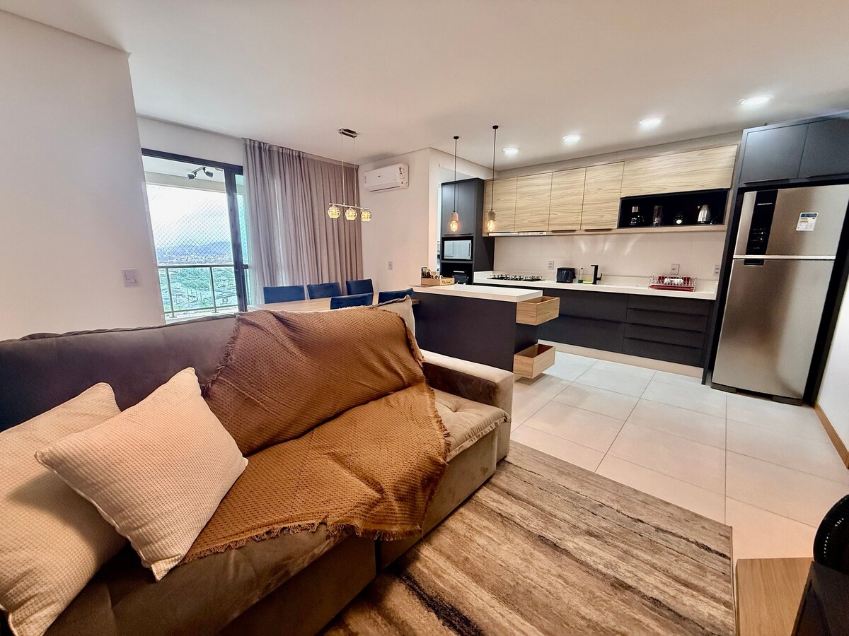 Disfruta de una experiencia elegante en este lugar bien ubicado. El alojamiento tiene una vista impresionante de la playa de Armação, fácil acceso a la playa donde el mar es tranquilo para los niños. Cerca del Parque Beto Carrero, a solo 800 metros. Cerca del mercado, tiendas, farmacia y panadería. El alojamiento tiene capacidad para tu familia y amigos para crear momentos increíbles. El edificio tiene una increíble piscina, gimnasio, sauna, sala de juegos y lugar de trabajo. Cochera para 2 autos