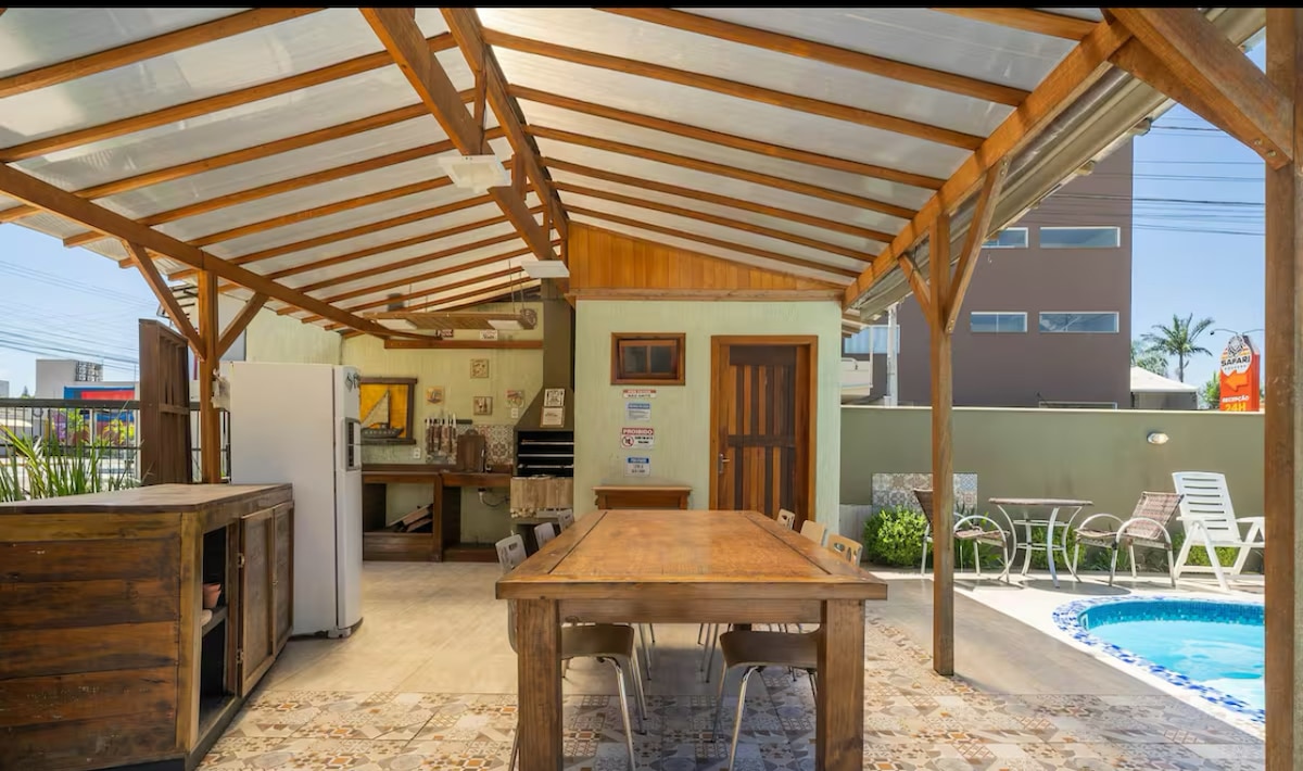 A nuestros huéspedes les encantará quedarse en nuestra casa, es espaciosa y muy cómoda, con aire acondicionado en todas las habitaciones. La zona de fiesta tiene parrilla, nevera, cocina de gas, leña y piscina con calefacción solar. El garaje es para hasta 4 coches sin cargo de estacionamiento. La casa está a 100 metros de la playa Alegre y a 7 km del parque temático más grande de América del Sur Beto Carrero World. Tenemos wifi gratuito para los huéspedes.