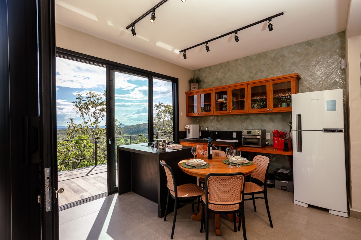 Relájate en este espacio amplio y totalmente climatizado. Ubicado a 5,5 km de Pirenópolis, el chalet tiene un dormitorio muy espacioso, una cama tamaño king, ¡ideal para aquellos que les gusta el espacio y la comodidad! ¡Tenemos una bañera y una piscina climatizada perfecta para las noches frías! ¡Nuestra cocina está completa, con microondas, licuadora, freidora de aire y utensilios de cocina básicos! ¡Proporcionamos ropa de cama y toallas! ¡Tenemos wifi, aire acondicionado y cafetera!