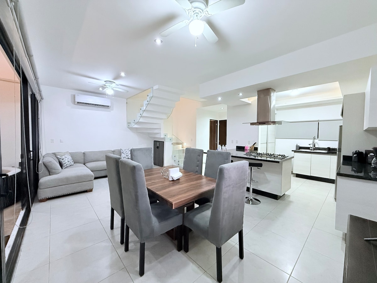 Disfruta de Cancún con comodidad, seguridad y ubicación privilegiada. Nuestra casa está en uno de los residenciales más prestigiosos de la ciudad, con doble caseta de seguridad, cámaras exteriores y acceso a una espectacular piscina. A solo minutos del aeropuerto, de las playas y del centro, en plena Av. Huayacán. Ideal tanto para relajarse como para disfrutar de todo lo que ofrece la ciudad. Espacios confortables y un ambiente familiar. ¡Perfecta para unas vacaciones seguras y bien conectadas!