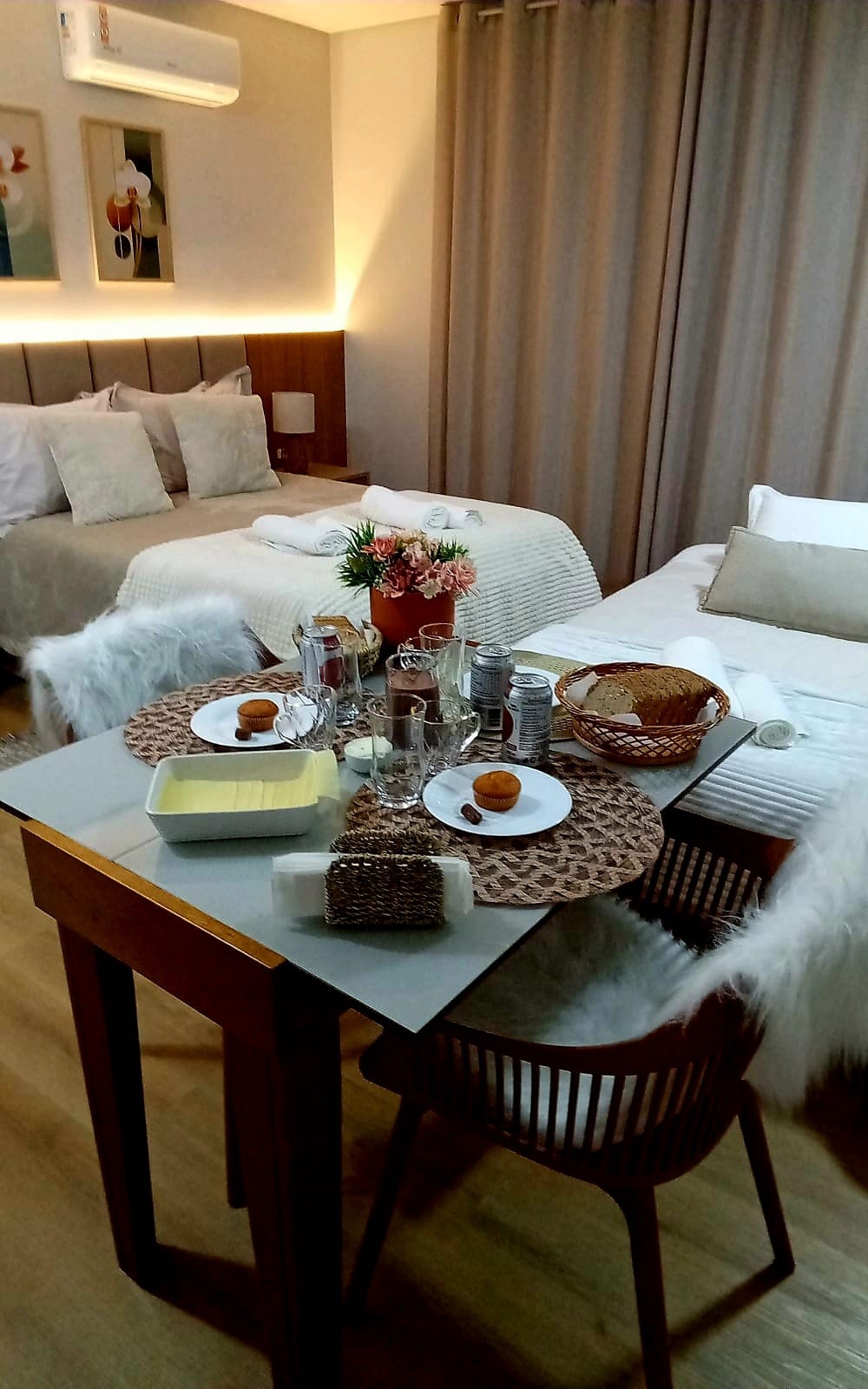 Nuestra casa Aconchegante tiene capacidad para 8 personas, con 3 suites: 1 en la planta baja y 2 más altas y 1 con agua, sala de estar con 1 sofá cama (doble), cocina completa. Somos aptos para mascotas. Estamos a solo 15 minutos del centro, a 8,6 km. Chateau Blanc destaca por su arquitectura inspirada en los castillos europeos, proporcionando una experiencia lujosa y diferenciada. La construcción es de un estilo clásico, con detalles sofisticados y elegantes, evocando un entorno de cuento de hadas.