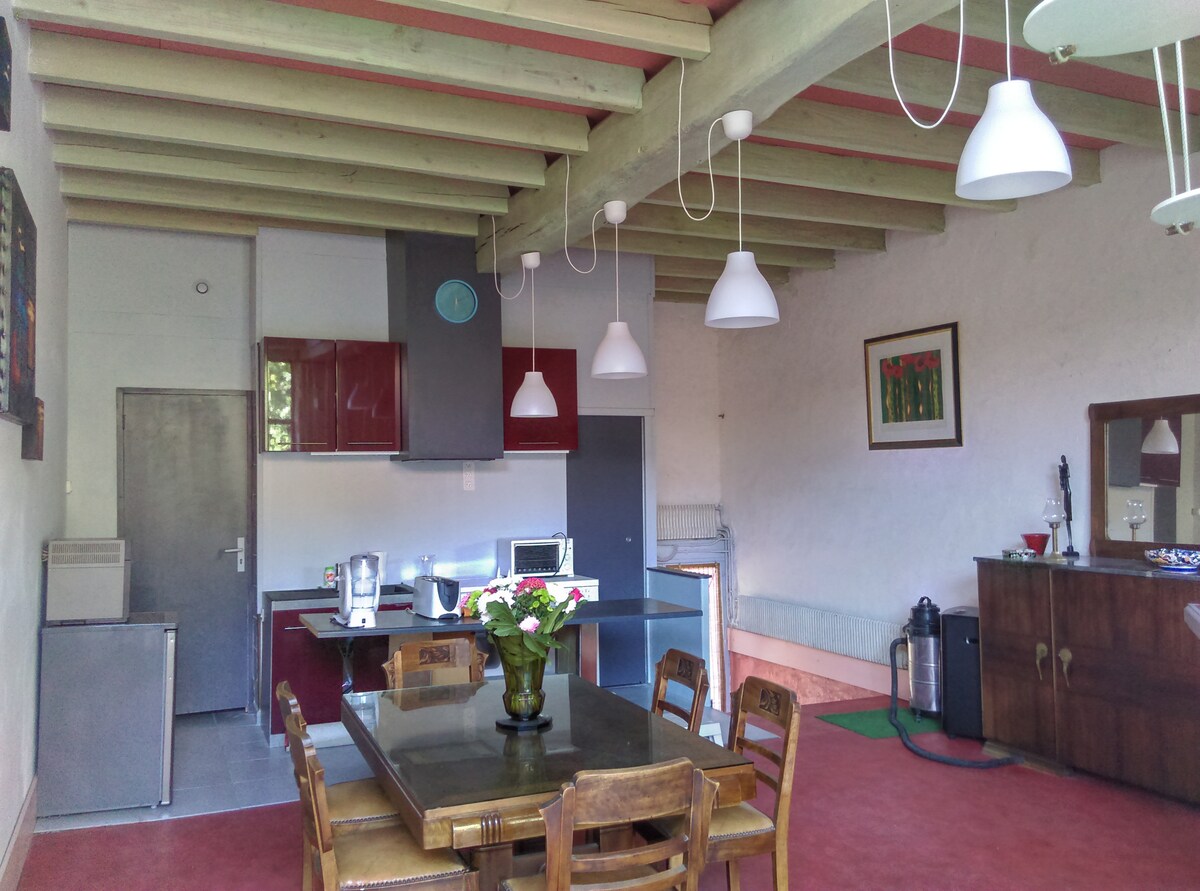 Gran loft de 50 m2 amueblado en el primer piso de una antigua granja, en la campiña de Vichy, a los pies de la montaña de Borbón, a dos pasos del río Allier, cerca de Saint Pourçain/Sioule. El alojamiento está bien equipado, dos o 3 personas estarán muy cómodas. Con el alojamiento tendrá acceso al «horno de pan» en la chimenea podrá cocinar sus parrillas. Ideal para un merecido descanso, para excursionistas, deportistas, para trabajar en paz.