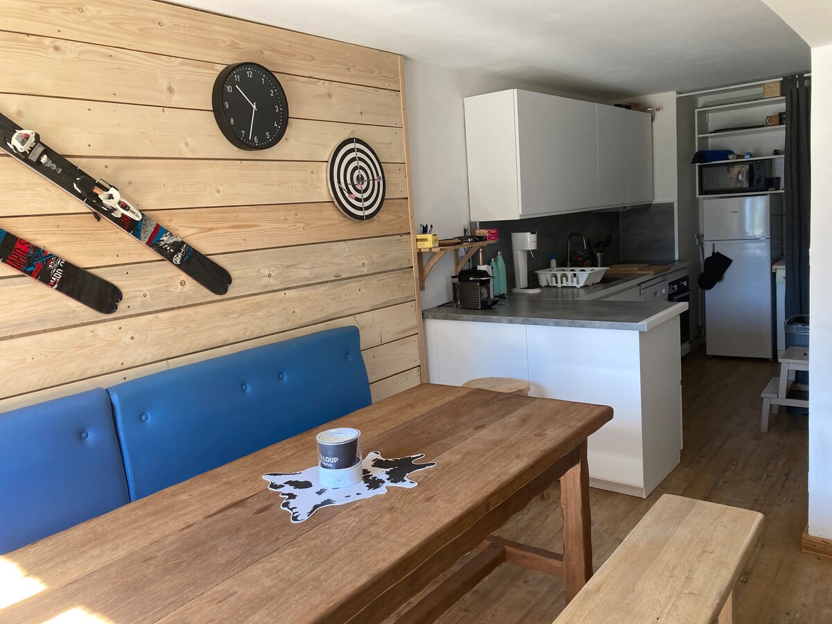 Situé aux pieds des pistes à proximité de la station. Au premier étage d’une résidence de montagne avec ascenseur, combine le confort et l’authenticité. Dispose d’un coin couchage avec des lits superposés, d’un salon avec un canapé convertible et d’une kitchenette équipée (micro-ondes, plaques chauffantes, frigo, et tous les ustensiles nécessaires, évidemment une machine à raclette est à votre disposition) Un balcon permet de profiter d’une belle vue sur la montagne et de l’air frais.