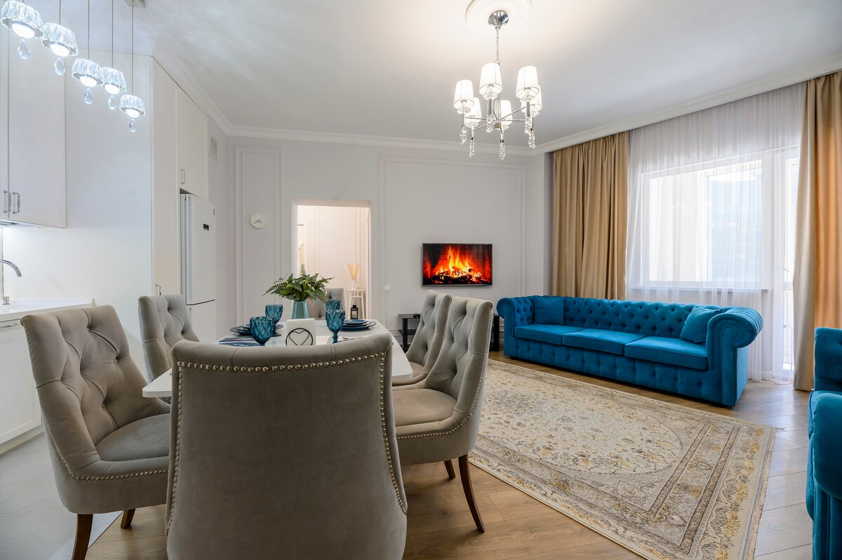 ¡Bienvenido a nuestro elegante y acogedor apartamento! Situado en el corazón de Almaty. Nuestro apartamento tiene una vista impresionante del Rixos Almaty. El apartamento es completamente nuevo, con una superficie total de 57 metros cuadrados, incluye 2 habitaciones y puede alojar cómodamente hasta 3 personas. Se encuentra en un edificio histórico con techos de 3 metros, lo que le da un encanto especial. El apartamento tiene todo lo necesario para una estancia larga. Cerca de la casa hay tiendas, parques, restaurantes y los principales lugares de interés de la ciudad.