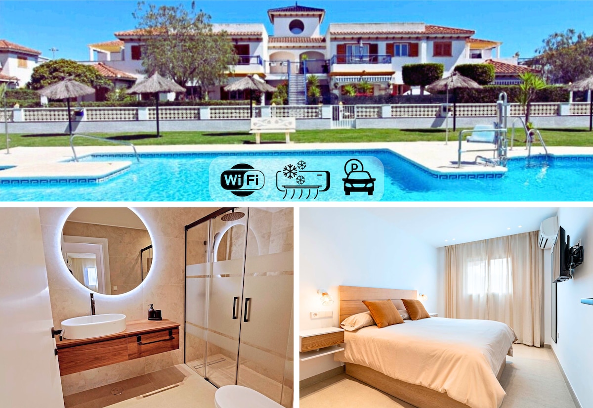 ¡Bienvenido a Vera-Pera! 🏡 Bajo moderno de 40 m² con todo lo que necesitas para relajarte o teletrabajar con comodidad. 🛋️ Terraza privada con zona chill-out y zona para comer. 🏊 Piscina abierta en la temporada de verano 🎬 Smart TV + Netflix 🍳 Cocina totalmente equipada. 🍽️ Restaurantes y bares a 1 minuto andando. 🏖️ Playa a solo 8 minutos andando. 🛡️ Urbanización privada con seguridad 24 h. 📆 Estancias largas bienvenidas.