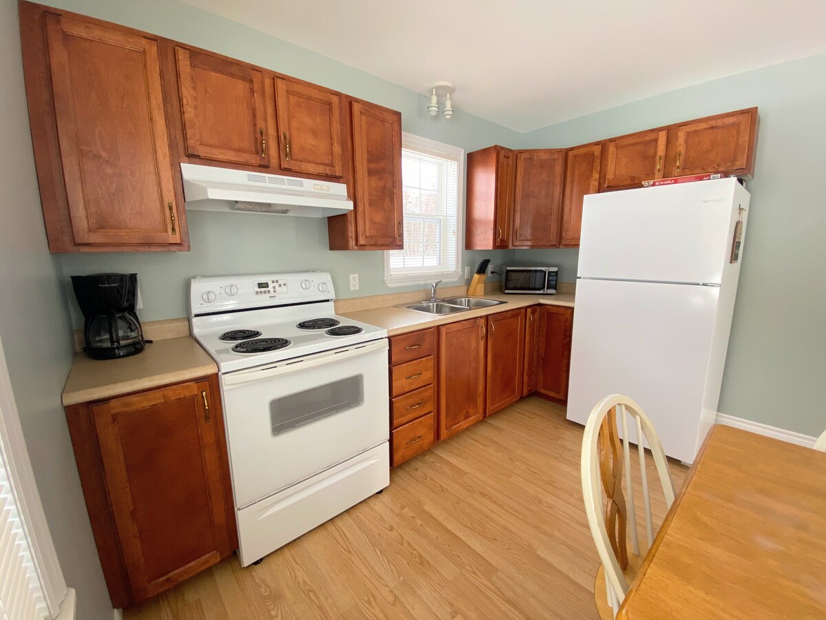 Simplifiez-vous la vie en restant dans ce logement tranquille et bien situé. Ce logement au rez-de-chaussée comprend 1 lit Queen et 2 lits simples, salon, salle de bain complète, laveuse et sécheuse, cuisine complète, air climatisé etc. Cet endroit est 5 minutes du Tim Hortons, des restaurants, liquor store, ile aux foins, quai, parc, festivals, Irving etc. Amateur de Vtt et motoneiges le sentier est directement ici et il y a de l'espace pour entreposer vos remorques (trailer) et camion gratuit.