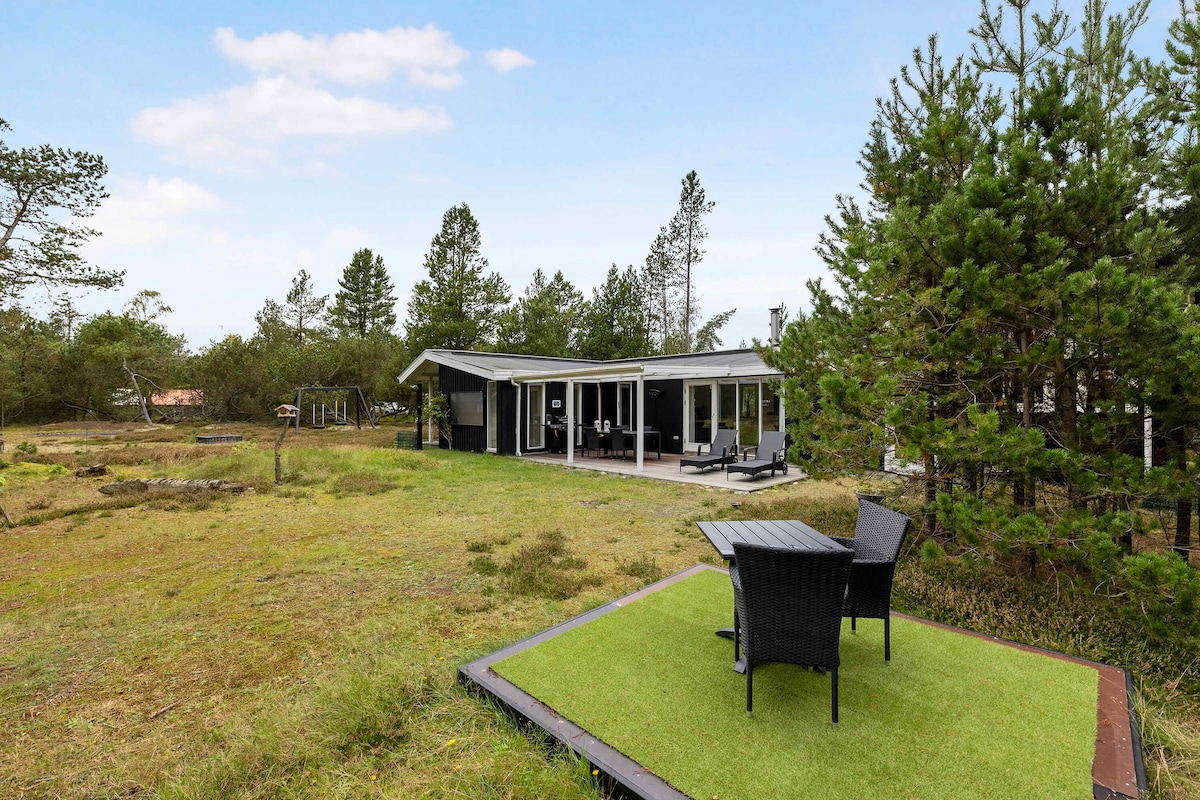 Una hermosa casa de campo familiar más nueva en el bosque - 109 m2 + 45 m2 anexo, jacuzzi al aire libre, bañera de hidromasaje y sauna. Hay terrazas alrededor de la casa, pista de voleibol de playa y zona de barbacoa. Hay una corta distancia al mar y 10 minutos a las hermosas playas de Øster Hurup y 5 minutos para ir de compras. La casa tiene capacidad para 8-10 personas. La casa está equipada con banda ancha de fibra y wifi que cubre toda la parcela natural de 3000 m2. En julio y agosto, el check-in es el sábado. Puede haber algunos insectos en ciertos períodos.