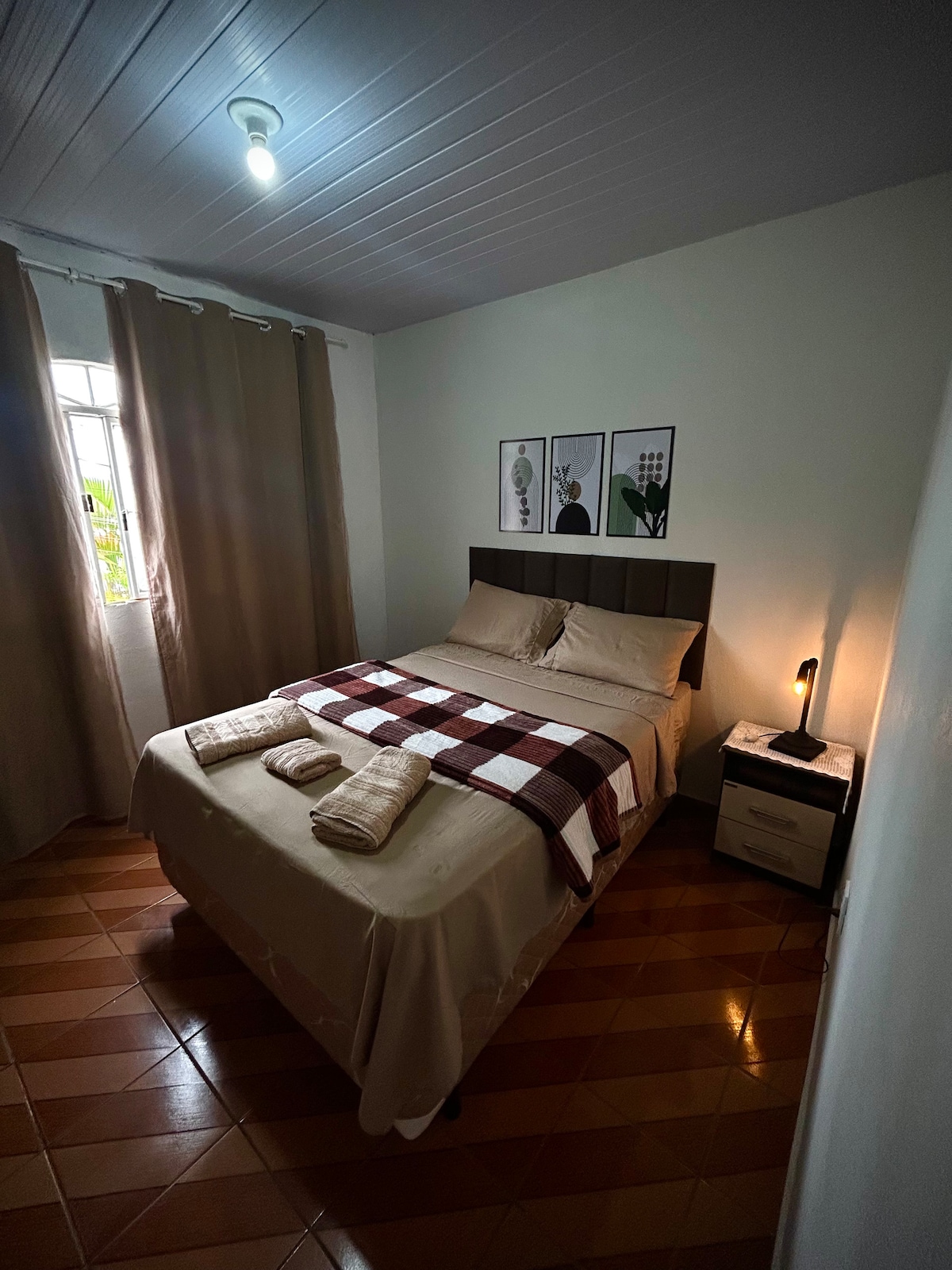 - Ubicada en el centro de la ciudad - Barrio tranquilo y sin mucho movimiento de coches y personas. - A 2 km de la entrada del Parque Nacional de Caparaó. - Supermercado con panadería cerca (200 mts). - Dos habitaciones, una con una cama doble y otra con una cama doble y una individual. -Tiene garaje -Sala con sofá, TV y Wi-Fi - Cocina completa con estufa, nevera, microondas, platos, cubiertos y más, fregadero y mesa. -Cuarto de baño con ducha eléctrica. -Balcón trasero con taque y tendedero. - Vista a las montañas.