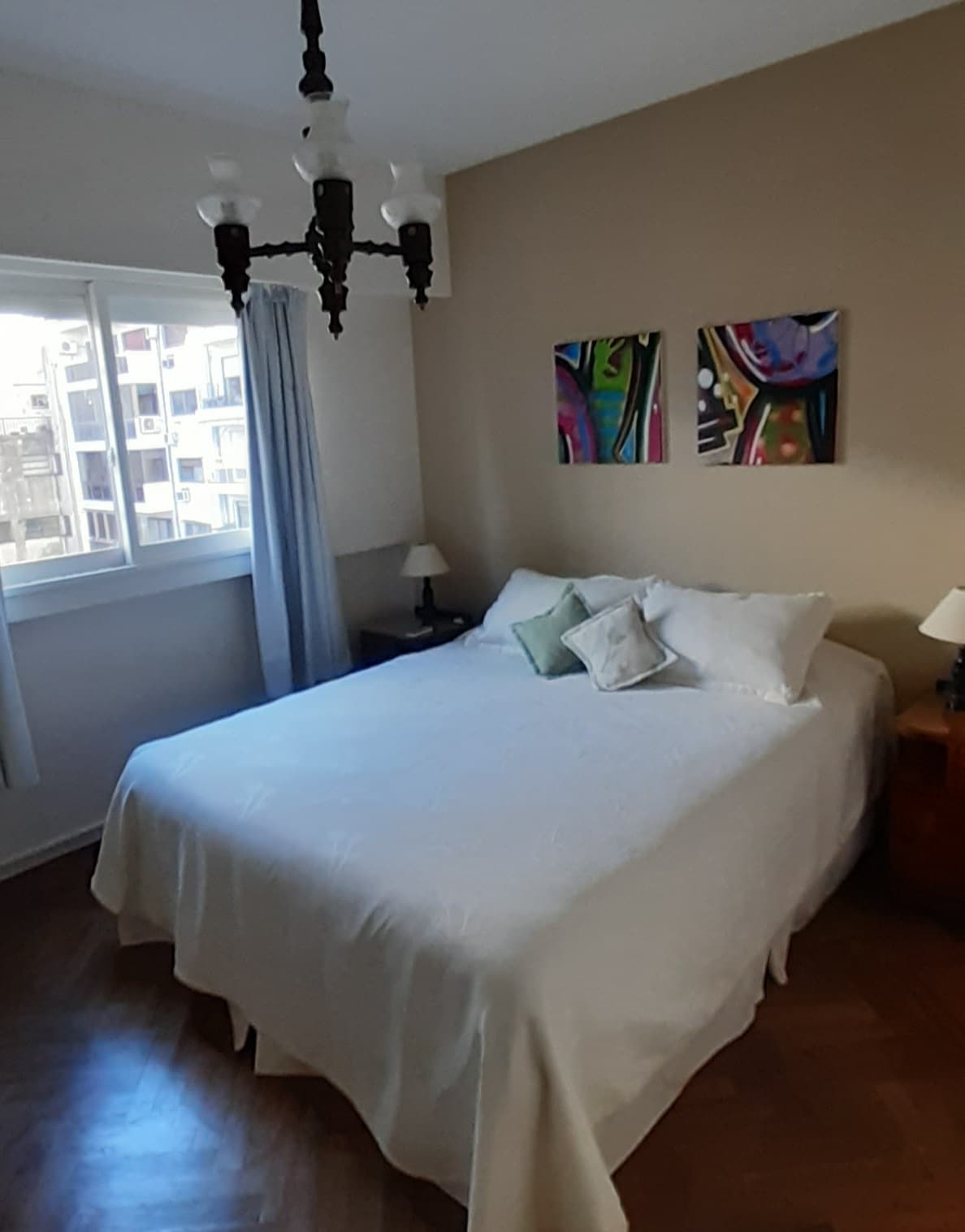 Espacio tranquilo, luminoso, elegante y cómodo para relajarte. Ubicado en una de las zonas mas lindas y cómodas de la Ciudad de Buenos Aires. El departamento cuenta con grandes ventanales que hacen que la vista sea única. Cuenta con 2 habitaciones: una de ellas con una cama matrimonial y TV, la otra con dos camas y un escritorio por si necesitas trabajar. 1 baño completo y 1 toilette. Living comedor con TV y cocina. El edificio cuenta con, pileta, sum, laundry y gimnasio.